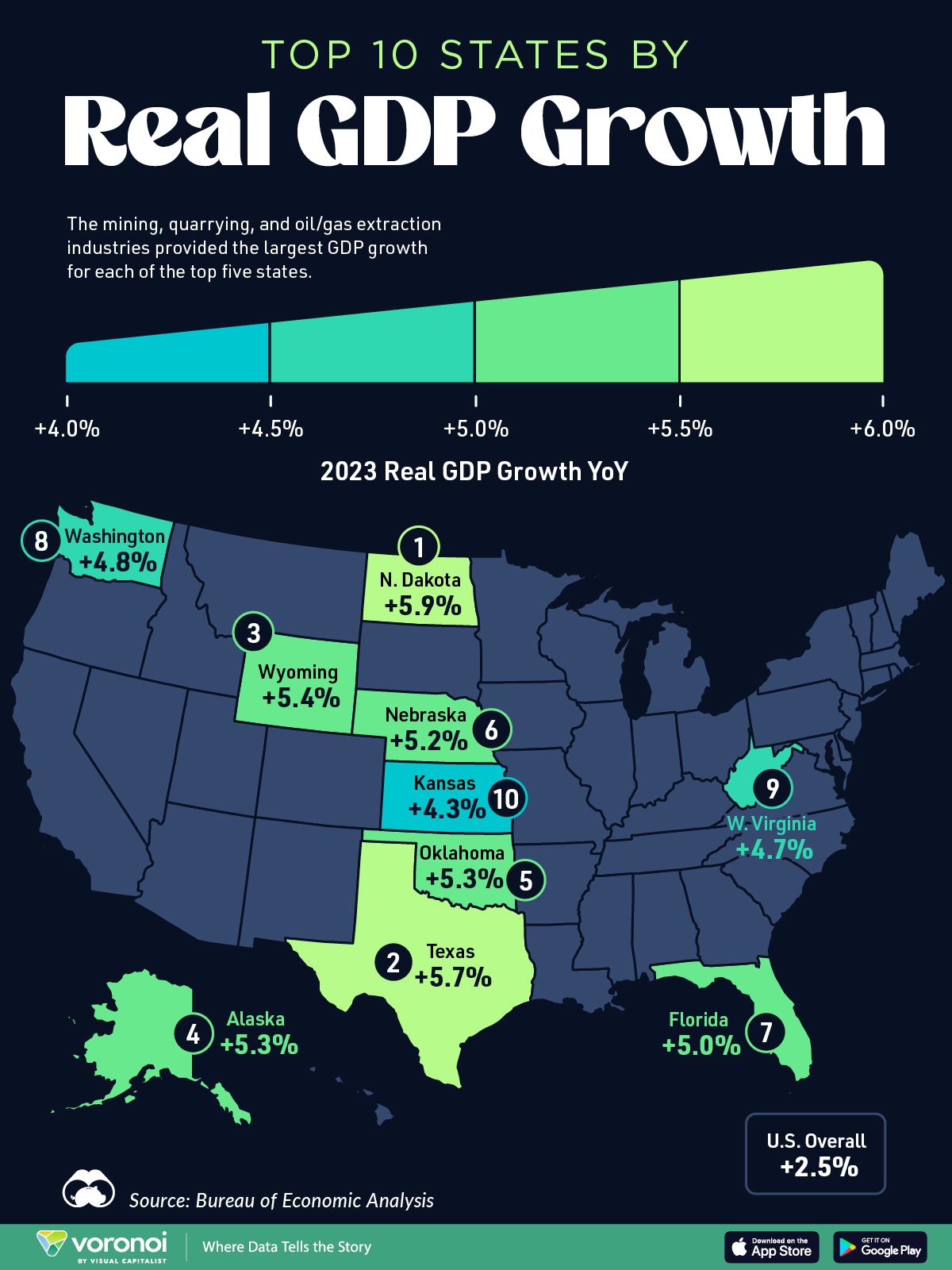 1 | North Dakota | +5.9% | $58B |